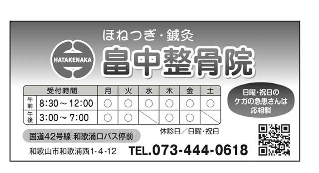 和歌山市 和歌浦口バス停前 畠中整骨院院長 畠中健でございます。